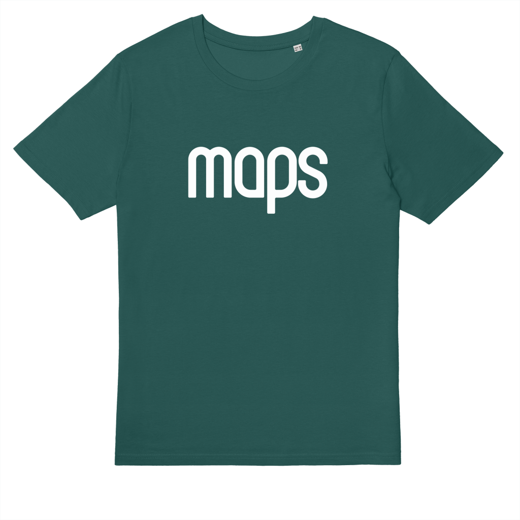 ‘Maps’ logo in white, on a premium Stanley Stella shirt.